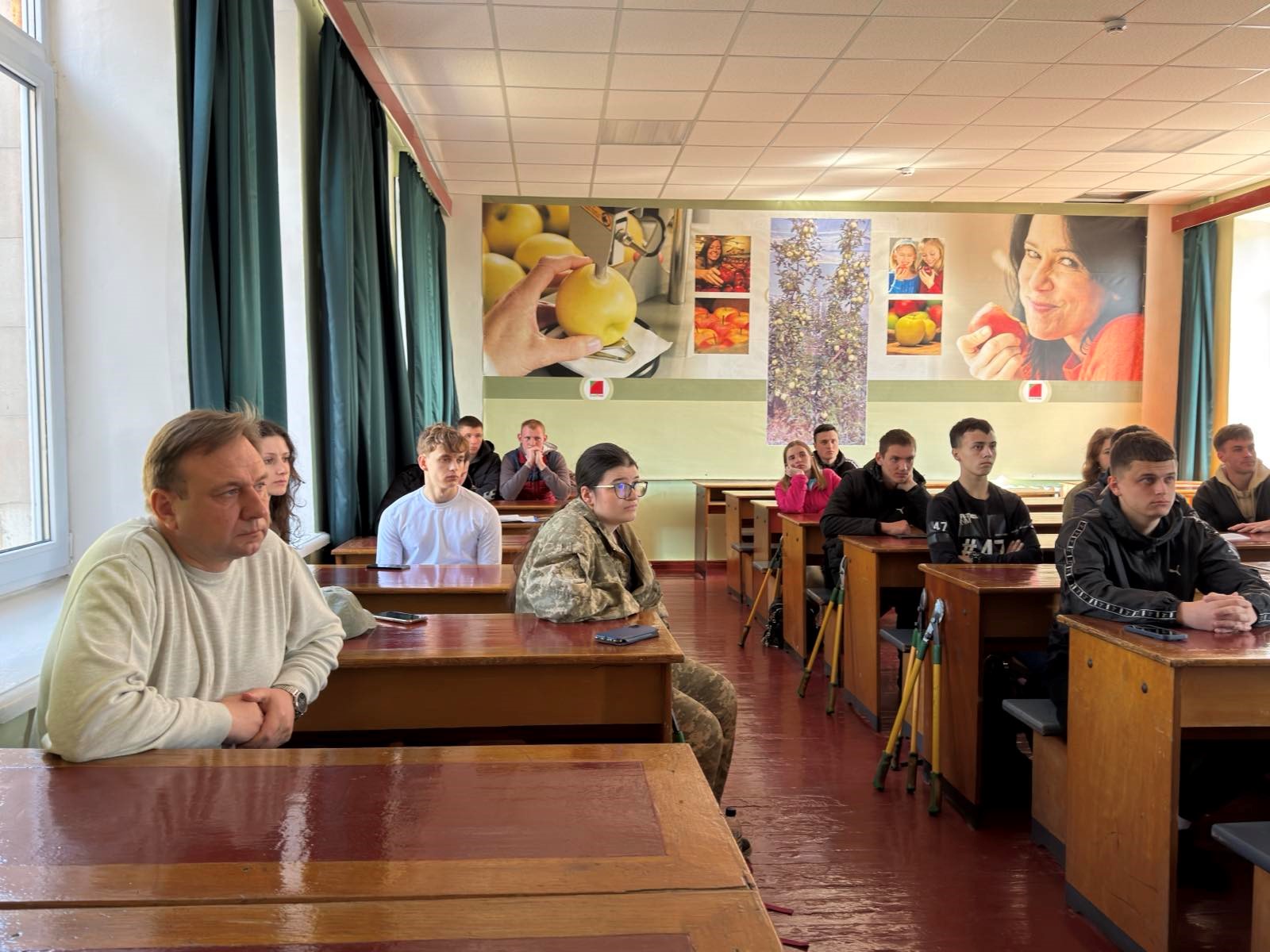 Студенти активно долучалися до обговорення, ставили запитання щодо організації виробничих процесів, економічної ефективності садівництва, а також перспектив розвитку галузі. Гість надав практичні рекомендації та підкреслив значення поєднання наукових знань із виробничим досвідом.