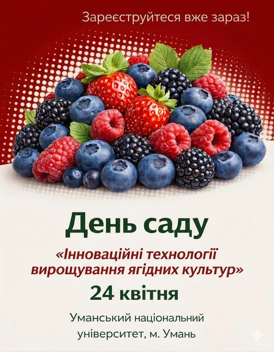 24 квітня в Уманському національному університеті відбудеться традиційний День саду, присвячений темі: «Інноваційним технологіям вирощування ягідних культур».