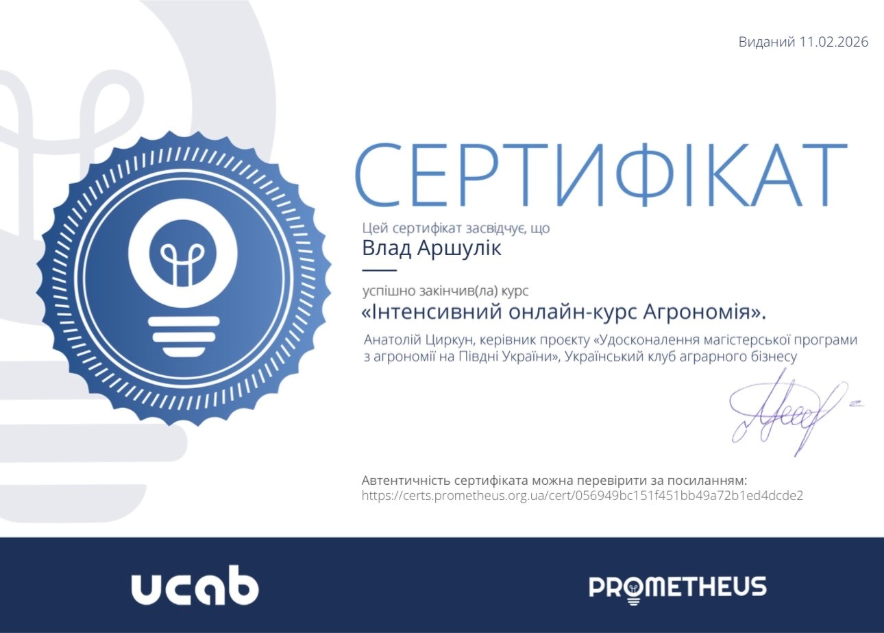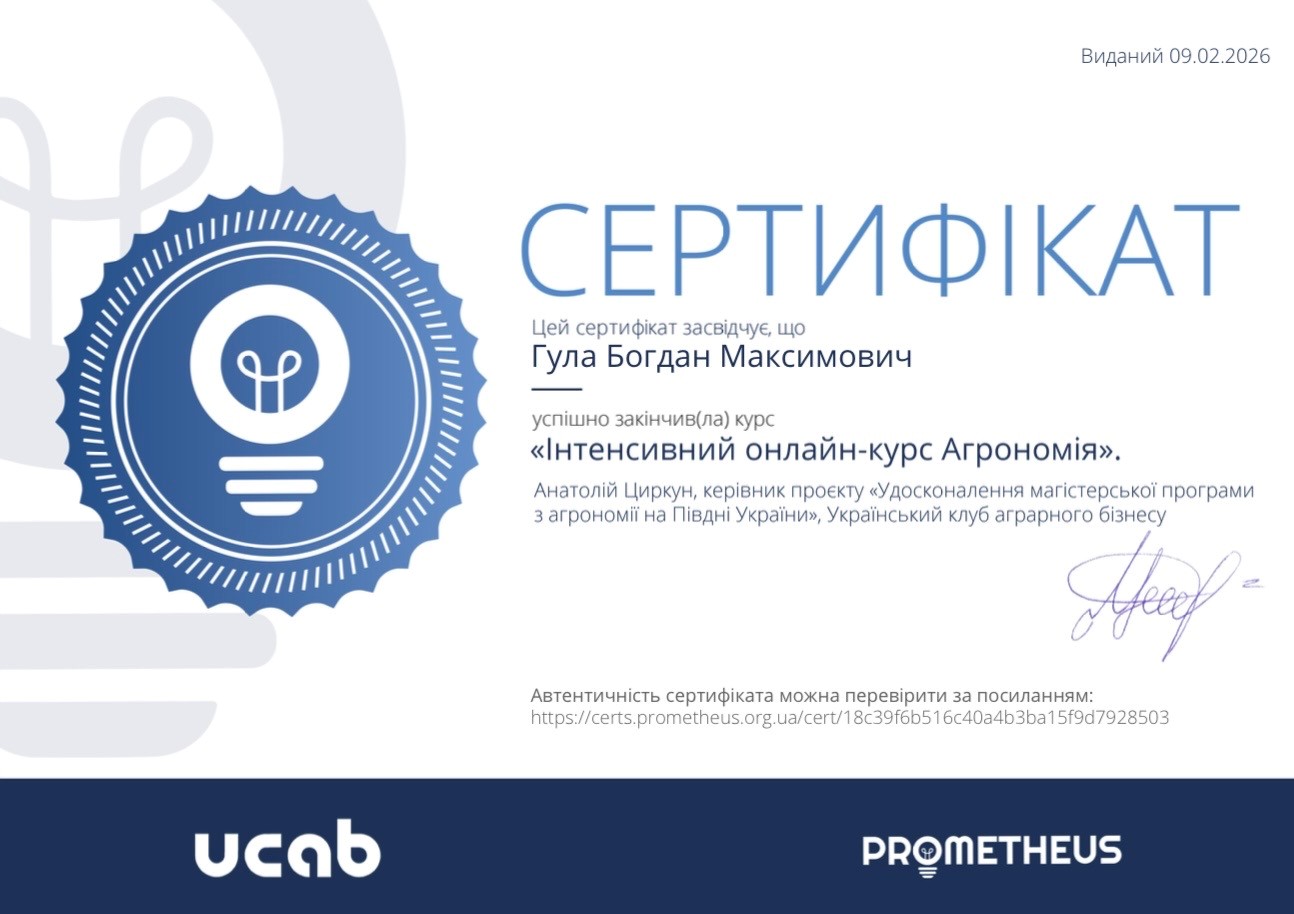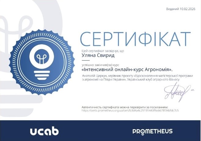 Нещодавно студенти 11-кс, 21-с, 31-с, 32-с та 11-мс груп успішно завершили навчання за програмою «Інтенсивний онлайн-курс Агрономія» на провідній національній платформі дистанційного навчання Prometheus.